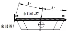 閥體起密封作為的為密封圈,焊接在閥體內(nèi)(圖5)。在2.5m立車上將組焊好的閥體裝夾在閥體密封圈加工工裝上,將立車刀桿旋轉(zhuǎn)8°,根據(jù)圖紙設計要求,找正后沿圓錐母線方向走刀,車至未焊不銹鋼前的尺寸。然后堆焊不銹鋼,最后將焊好不銹鋼的閥體重新上立車,按上述方法車閥體密封圈至圖紙要求尺寸。最后在立車刀架上裝磨頭,對閥體密封圈進行磨削處理,使其達到圖紙設計粗糙度要求。